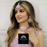 3 piece lilac stone choker set. Item comes with matching earrings and tikka.