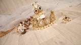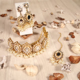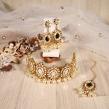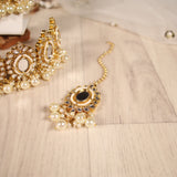 Mirror choker set with pearl beads. Item comes with matching earrings and tikka