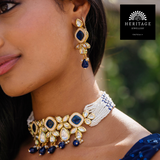 2 piece navy stone, pearl choker set. Item comes with matching earrings.