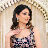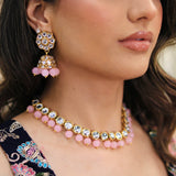 Pink simple set. Item comes with chumki earrings & matching tikka.