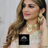 Regal kundan effect light peach set. Item comes with matching earrings and tikka.