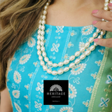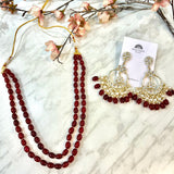 Simple long pearl set with statement earrings. Item comes with matching earrings.