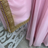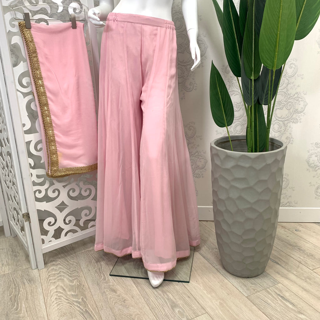 Featuring a gold trim at the bottom of the Sharara and the four sides of the Duputta. This design is the perfect addition to your outfit for that next function / event!