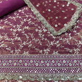 ▪️Tulle net dupatta with embroidered motifs & four side scalloped border