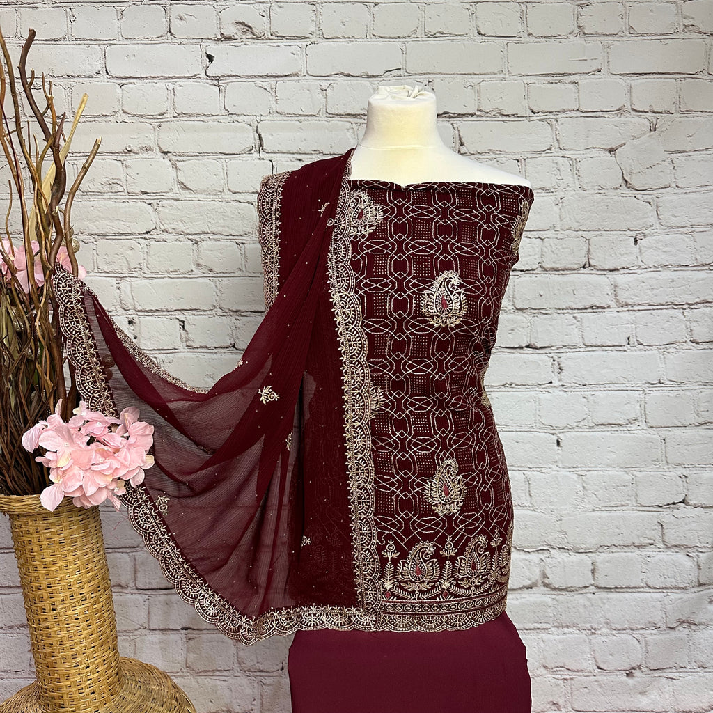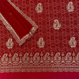 ▪️Soft faux silk dupatta with motif embroidery and stonework all over with four side embroidered border