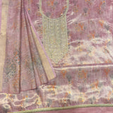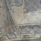 ▪️Faux soft floral shimmer silk suit with an intricate neck design with crystal stonework & border