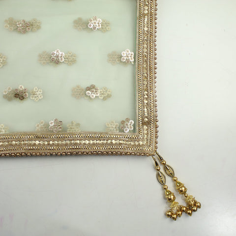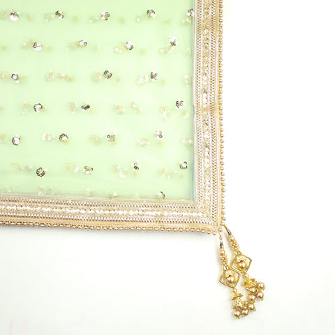 MAYA | LIGHT GREEN SEQUIN TRIMMED PLAIN SILK BLOUSE