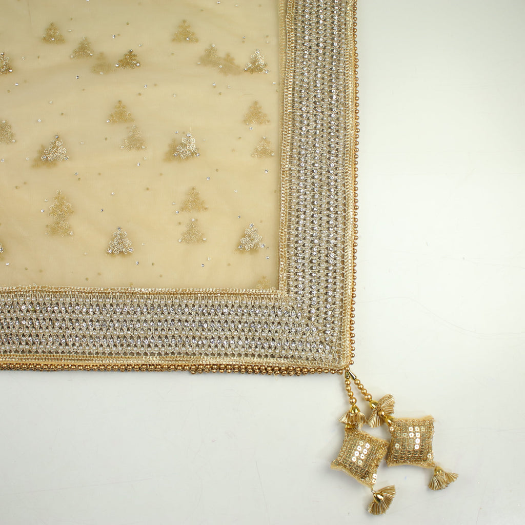 • Net Tulle Dupatta with Multi Sequin Triangle Motifs and Stonework