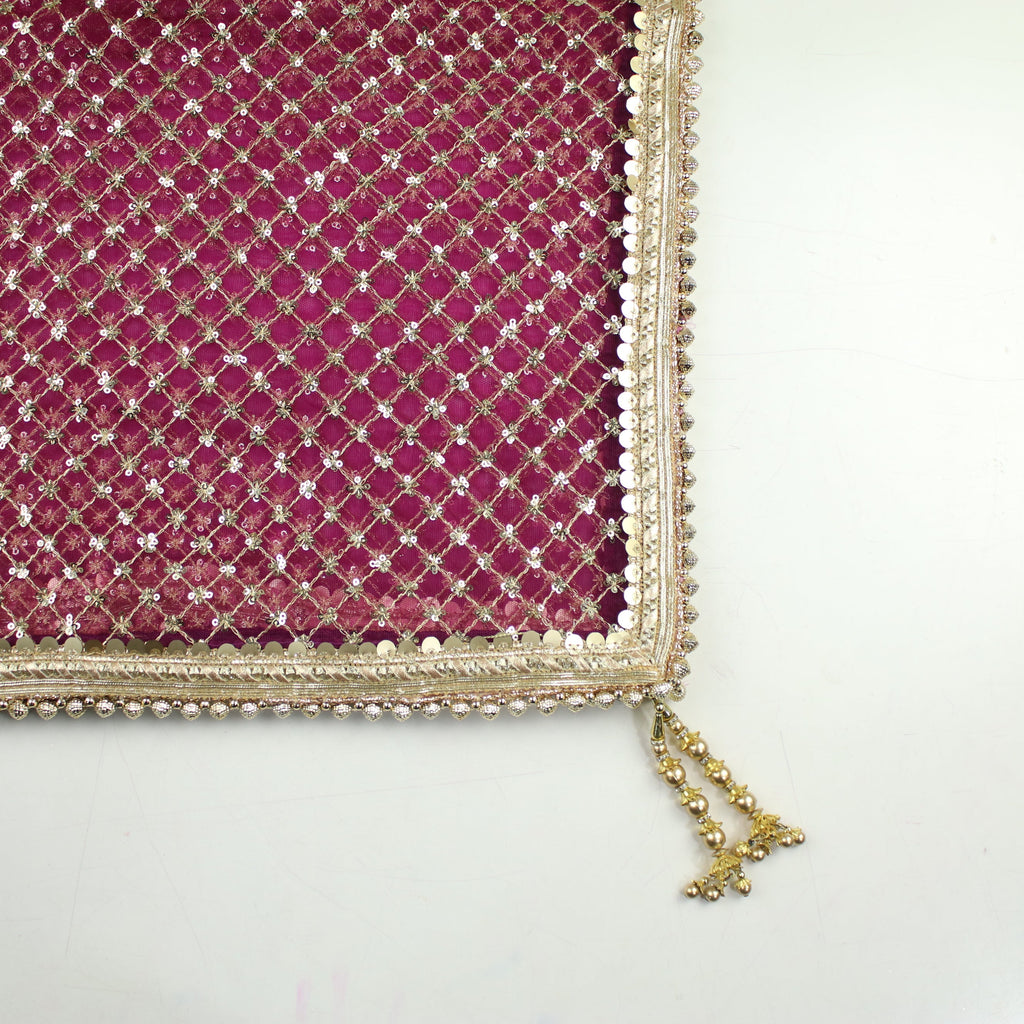 - Net Tulle Dupatta with Gold Sequin Mini Check Jaal Embroidery