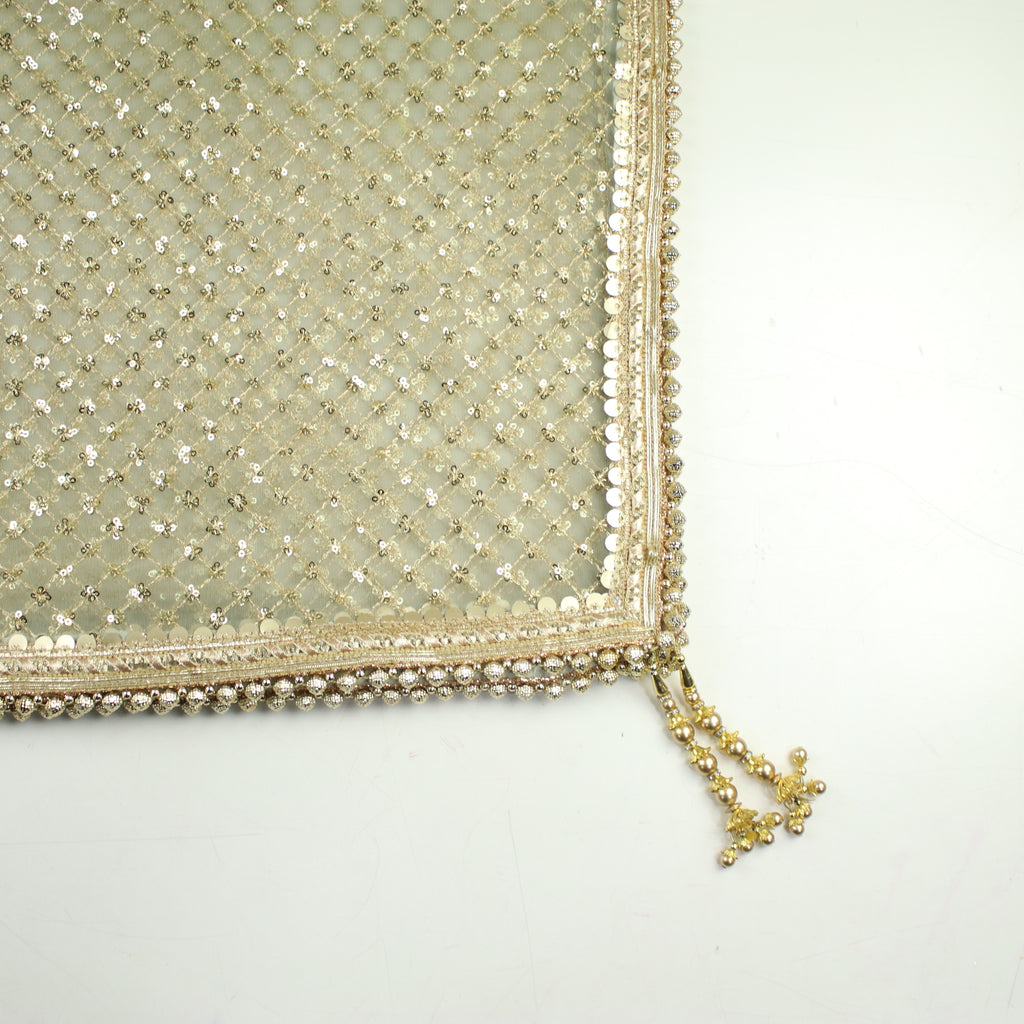 • Net Tulle Dupatta with Gold Sequin Mini Check Jaal Embroidery