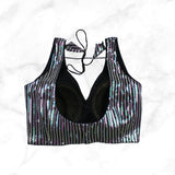 • VAANI | BLACK HOLOGRAM GLITZY STRIPED SEQUIN BLOUSE