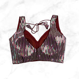 VAANI | WINE MAROON HOLOGRAM GLITZY STRIPED SEQUIN BLOUSE