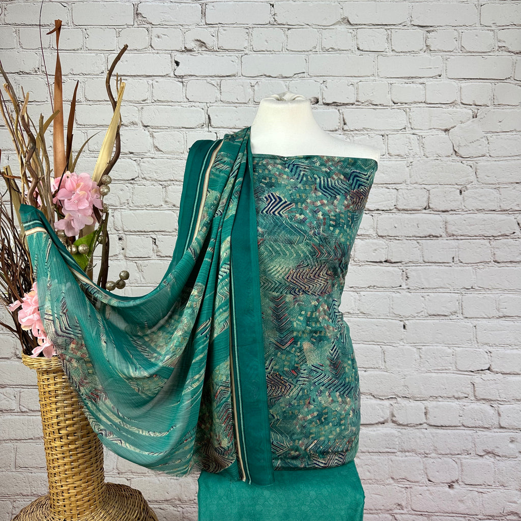 ▪️Abstract Crepe Print Suit with stonework all over