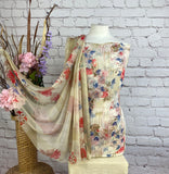 ▪️Floral Georgette Print Suit with stonework all over & gold border