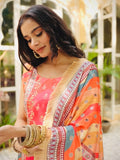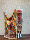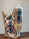 ▪️Statement multicoloured digital print dupatta with 4 side antique gold fringe border