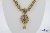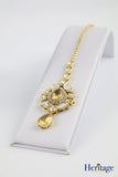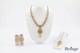 Kundan set with pendant design and gold stone detail. Set comes with matching earrings and tikka.