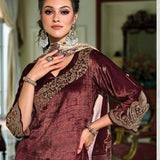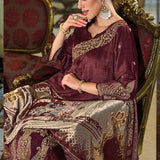 ▪️Designer Maroon Luxury Embroidered Velvet Suit