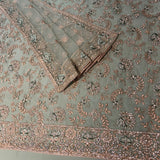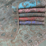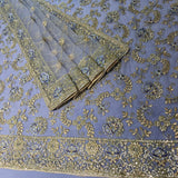 ▪️Unstitched tulle net suit with self threadwork zari floral jaal embroidery with stonework all over & border