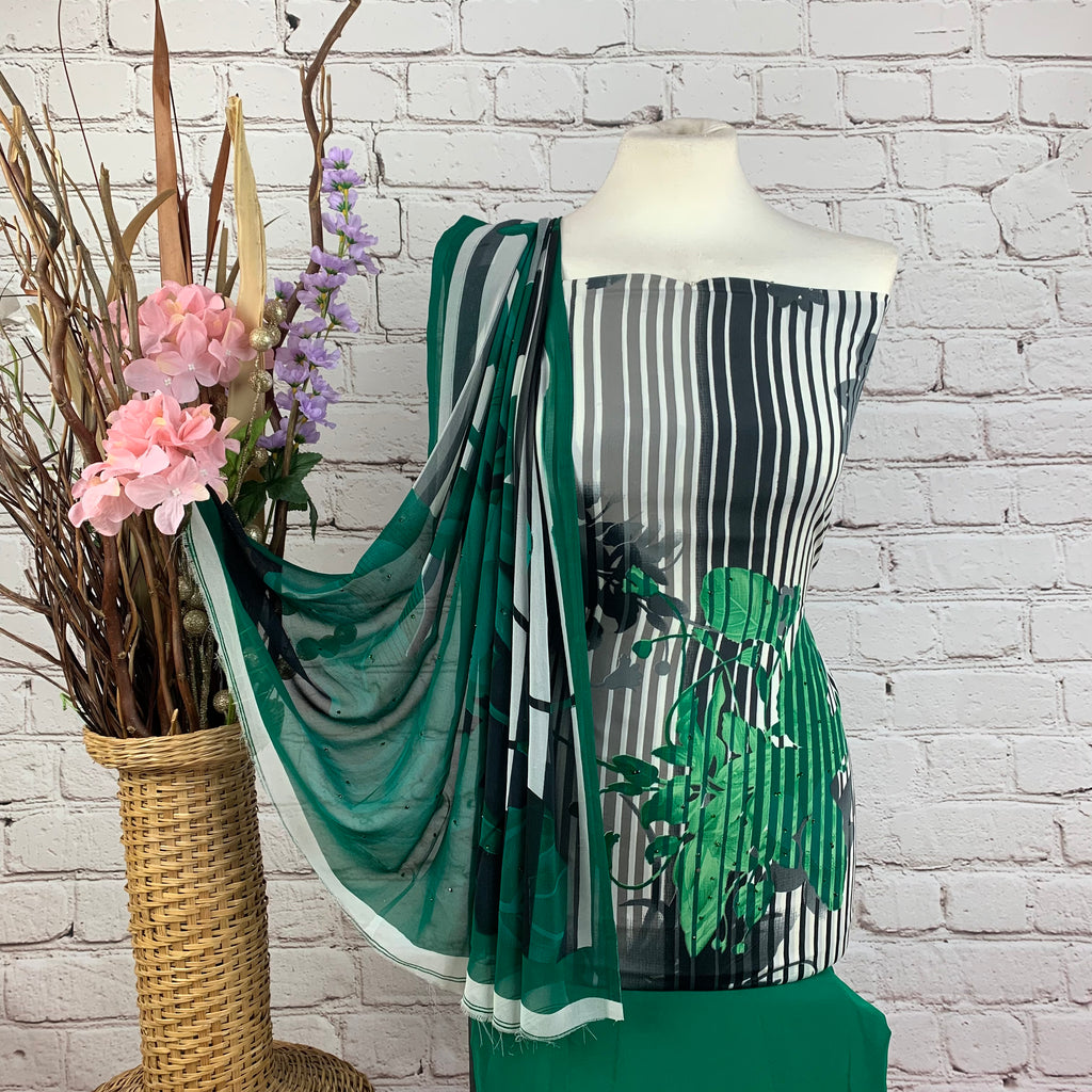 ▪️Floral Crepe Print Suit with stonework all over