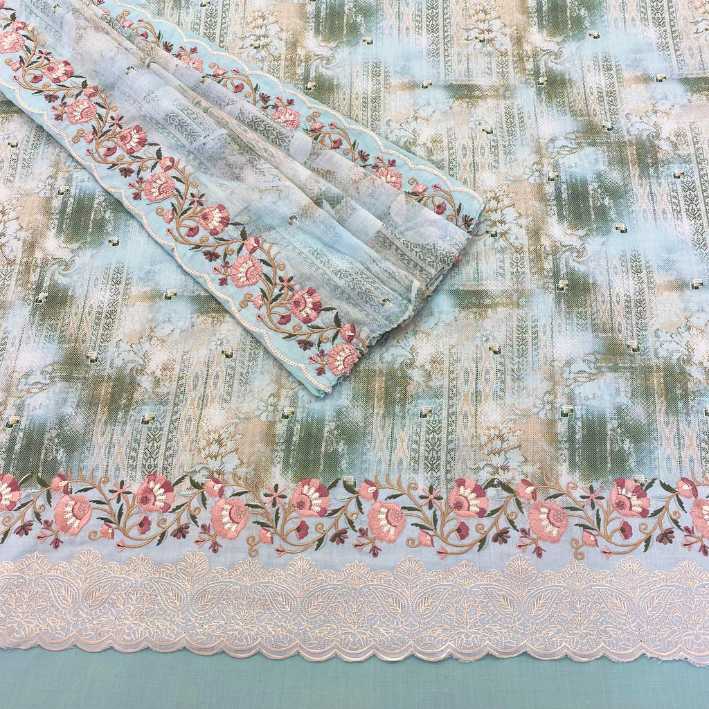▪️Floral digital cotton print suit with threadwork embroidery on border