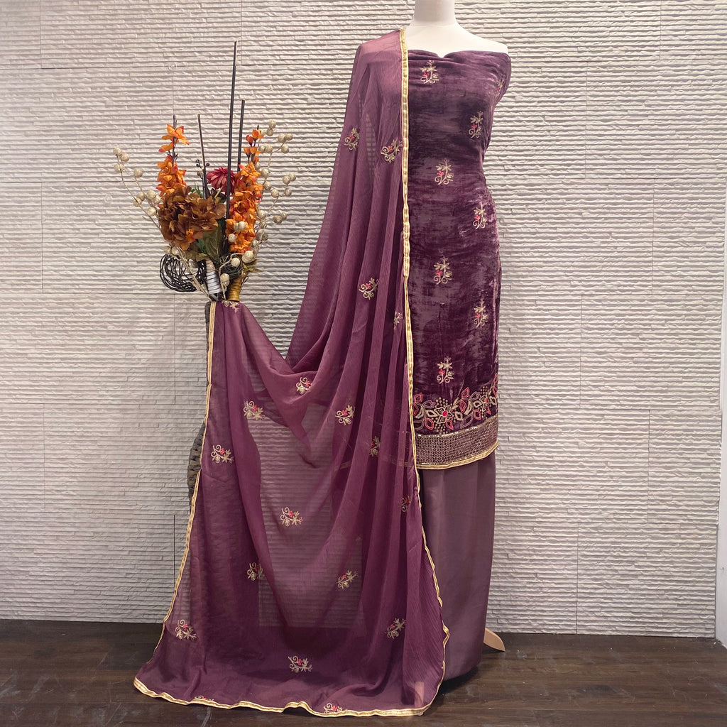 ▪️Embroidered floral velvet garam suit with threadwork embroidery & border