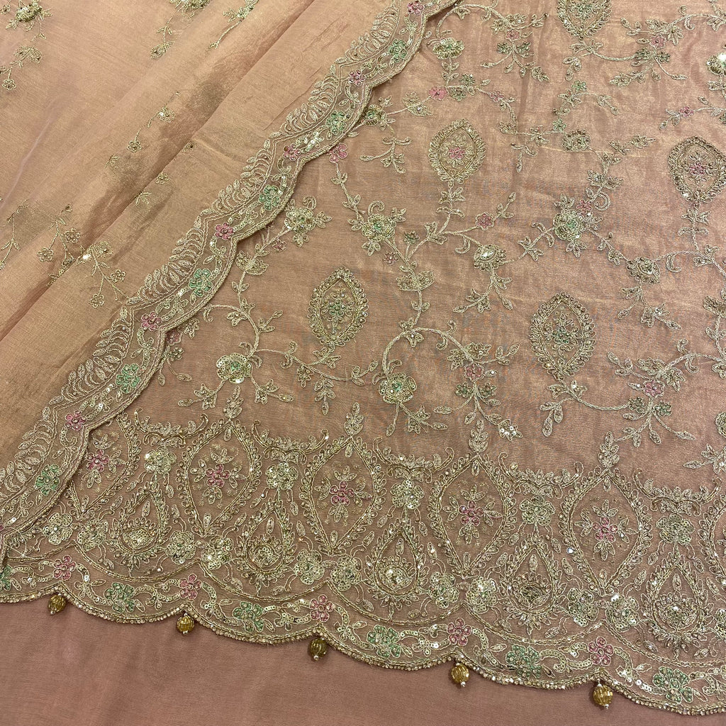 ▪️Embellished with antique gold stonework, sippi and dori jaal embroidery & finished with scalloping on border & tassels