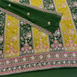 ▪️Unstitched colourful soft faux silk jaal embroidred suit with doriwork, sippiwork & stonework