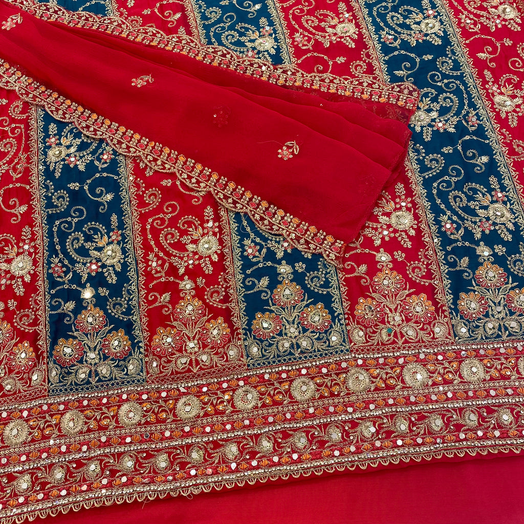 ▪️Comes with a matching chiffon dupatta with a four side gold border with stonework all over