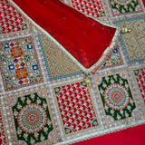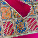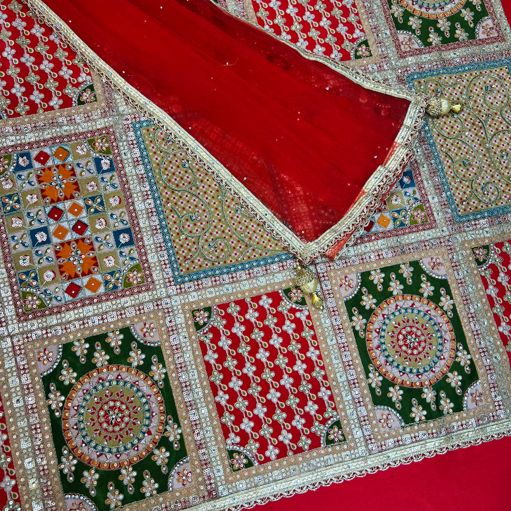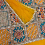 ▪️Comes with a matching tulle net dupatta with a four side gold border with stonework all over
