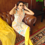 ▪️Unstitched colourful digital printed soft faux silk suit embellished with doriwork, sippiwork & stonework