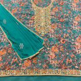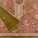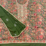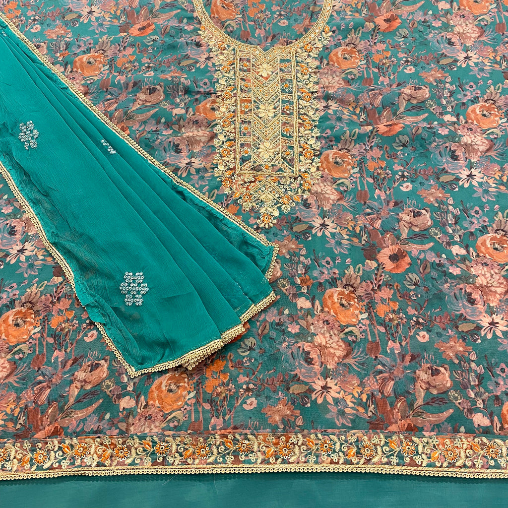 ▪️Unstitched soft faux organza silk suit with an embroidered intricate neck design which features antique sippiwork & stonework with border