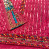 ▪️Unstitched soft faux benarsi silk suit with an intricate threadwork neck design which features antique stonework, embroidery with border