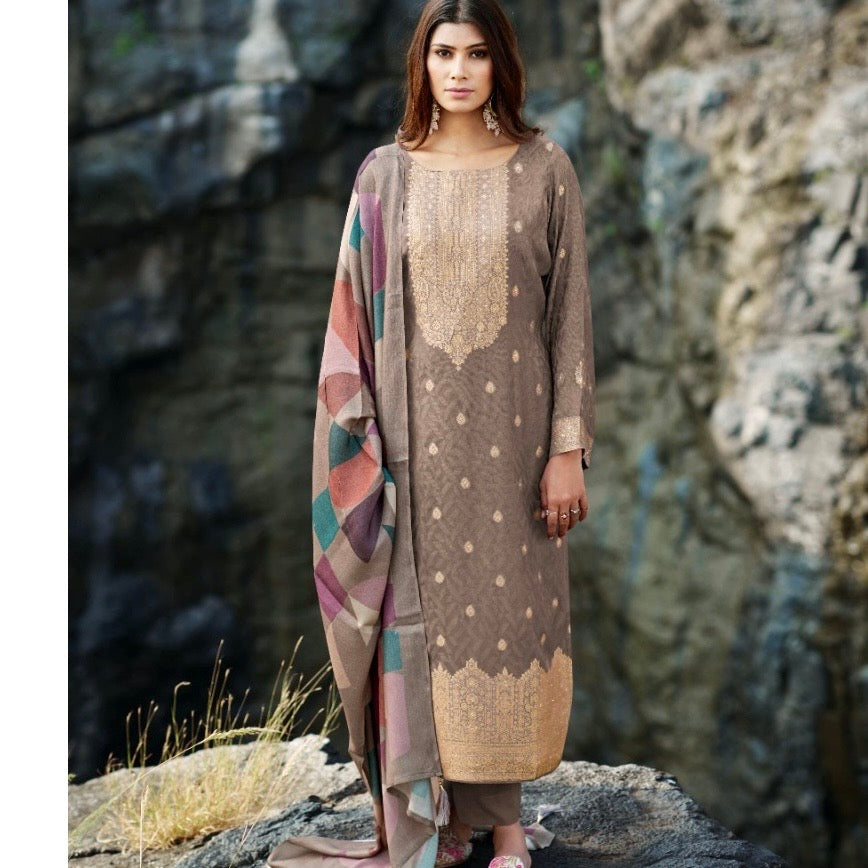 ▪️Silver Grey pure woven pashmina jacquard suit with swarovski stonework