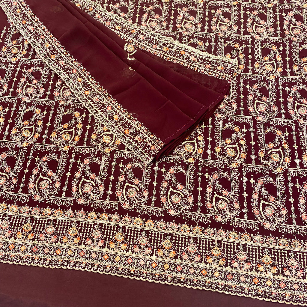 ▪️Unstitched soft georgette suit with jaal contrast threadwork embroidery with border & subtle sippi work all over