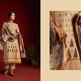 ▪️Designer beige pashmina digital printed kameez with foil enhancements
