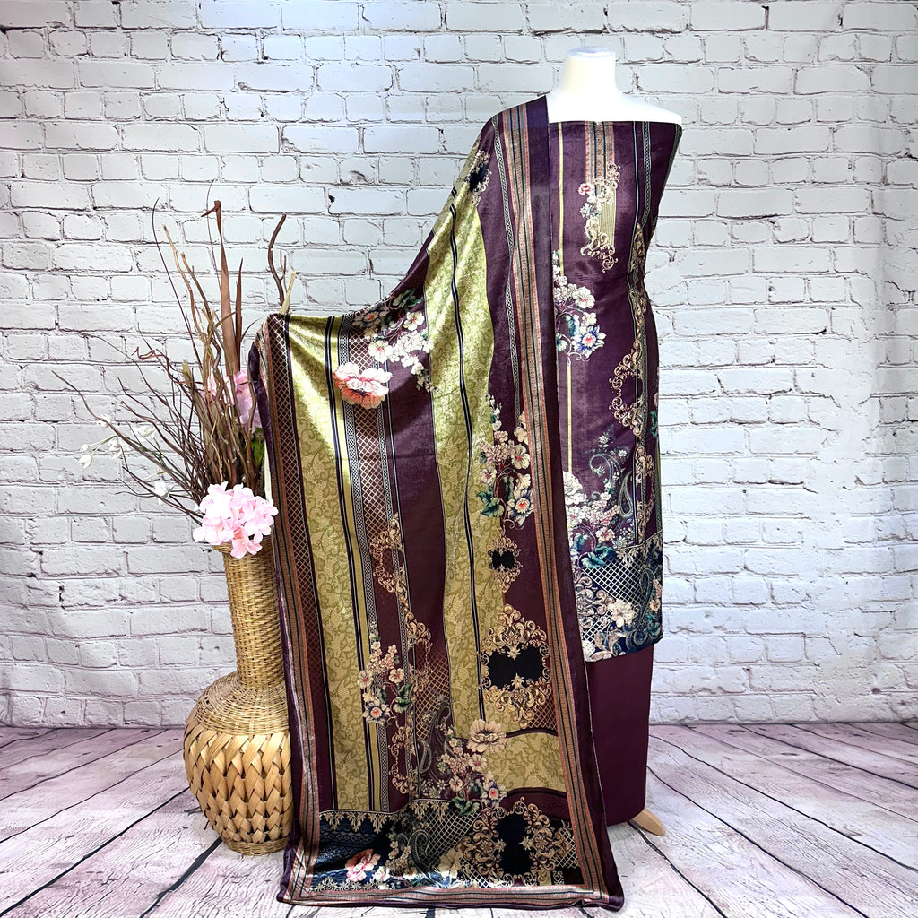 ▪️Designer Wine Luxury Digital Velvet Print Suit with Stonework all over