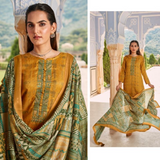 ▪️Mustard pashmina suit with digital print all over & embroidered neck design