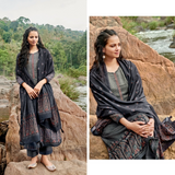 ▪️Designer dark slate grey pashmina abstract digital print with threadwork embroidery on neck