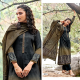 ▪️Designer charcoal pashmina abstract digital print with threadwork embroidery on neck