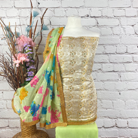 Unstitched Soft Faux Floral Benarsi Silk Suit (D63)