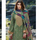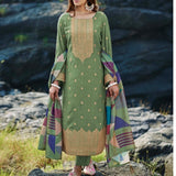 ▪️Spring Green pure woven pashmina jacquard suit with swarovski stonework