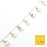 WHITE Pom Pom Tassels Indian Woven Gold Trim Ribbon Border Lace Ethnic